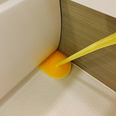 柄の長さが約48cmあるので楽にスミまで届いてしっかりおそうじできます。また、90°まで自由に動くスポンジがいろいろな面にフィットし、浴室全体をしっかり洗えます。