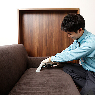 家具の素材に合った方法と専用の薬剤で、ていねいにクリーニングします。シミや汚れは部分的に前処理し、素材を傷めないよう十分配慮したうえでシャンプークリーニングを行います。