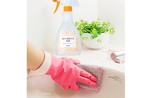 頑固な汚れには「風呂・化粧室用洗剤」をスプレーしてから使うと、さらにラクにキレイになります。