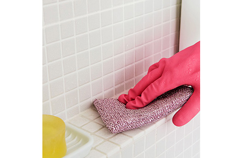 しつこい湯アカや石けんカスも、素材を傷つけずにすっきり洗浄。薄型で柔らかいから、蛇口まわりの入り組んだところも隅々までスポンジが行き届きます。しかも抗菌スポンジが入っていて衛生的。2個セットだから洗面台と浴室に1つずつ置いておくと便利です。