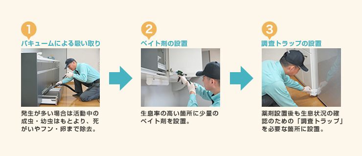 店舗に負担をかけずに徹底駆除を実現する独自のステップ
