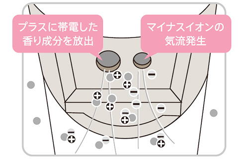 大きい穴からプラスに帯電した香り成分を放出します。