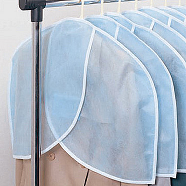 中身がひと目でわかるハンガー用ホコリよけカバーです。前合わせタイプで出し入れが簡単。通気性の良い不繊布を使用。大切なスーツをほこりから守ります。
