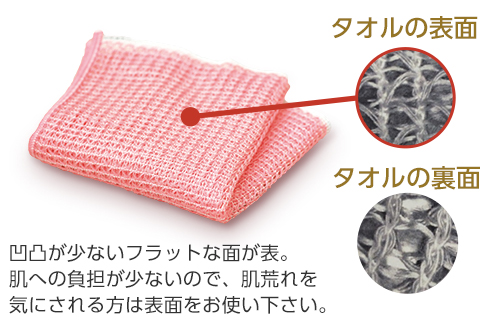 コシのある糸と細い糸という2種類の異なる性質を持つ繊維で編んでいるため、きめ細かい泡が立ちます。 トウモロコシとコットンでお肌にやさしく、ぜひナチュ高保湿ボディソープと一緒にお使いください。