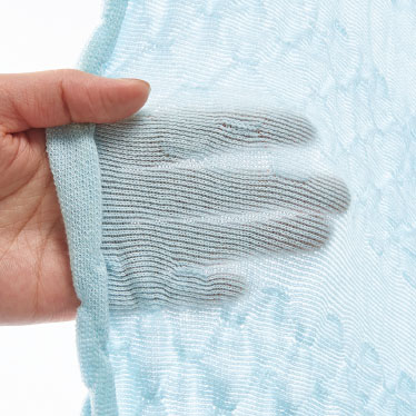 肌に触れる部分は、綿100%糸を使用し、特殊な編み方で作っているので、熱や湿気を発散するだけでなく、風通し良く爽やかに眠れます。