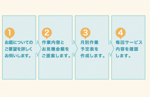 作業内容とプランを事前にご提案。サービス実施前にも毎回、必ず内容を確認するので、その都度ご要望に添ったサービスに変更することもできます。