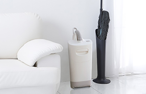 よくおそうじする場所など使いたい時に置いて、スグ使えるように収納ケース付き。いろんな場所に似合うスタイリッシュなデザインだから、置く場所を選びません。