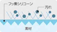 フッ素シリコーンを表面全体にコーティングすることで、汚れがつきにくい状態をキープ。
