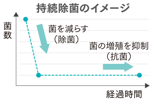 ※持続除菌とは、除菌と抗菌を組み合わせることで、菌を減らした後、菌を増やさないことをいいます。