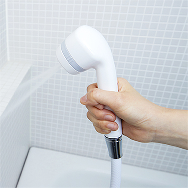 通常のシャワーに加え、勢いのよい水流に切り替え可能。お風呂掃除に便利です。